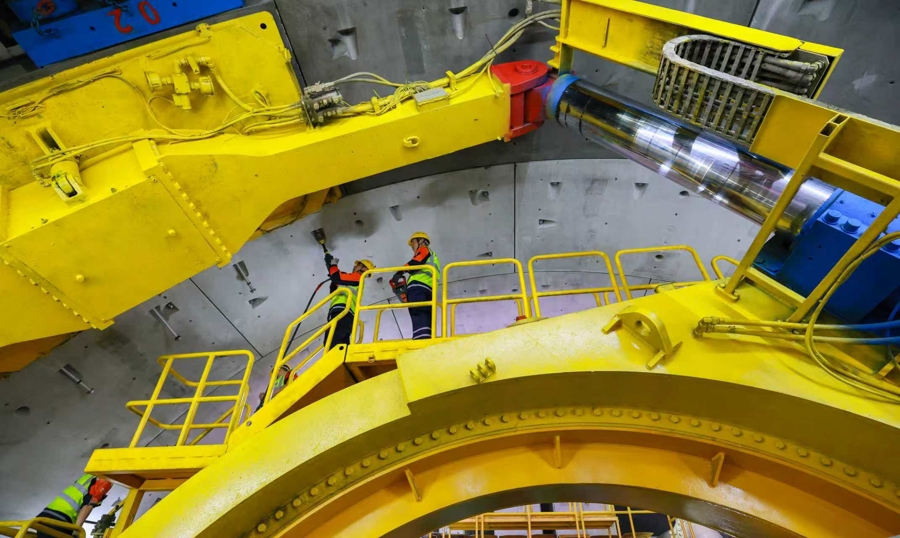 工作人员在进行管片拼装作业 中铁十一局供图